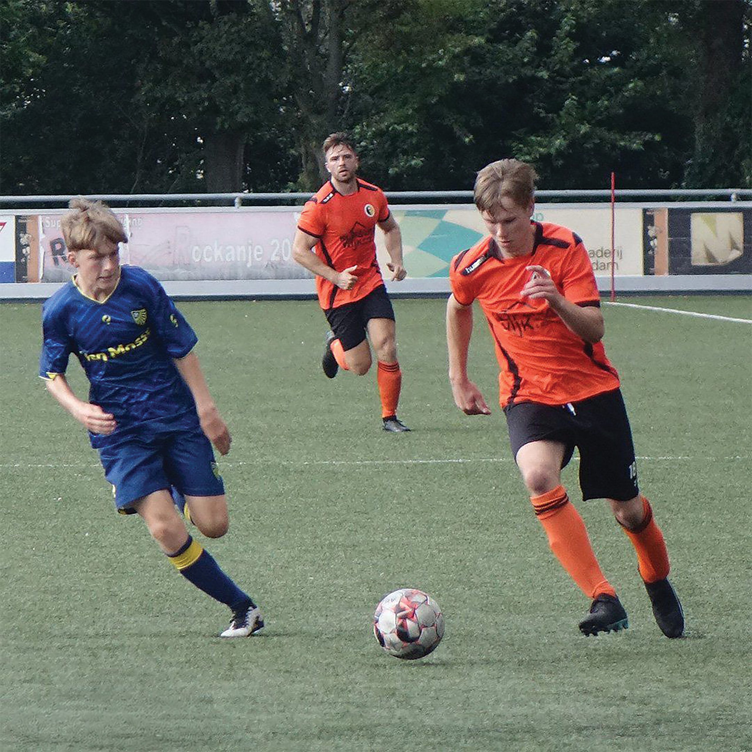Maar vanzelf, komt dat zeker niet. “De trainingsopkomst kan wel wat beter.” Bij de club, waar Van Mourik al sinds jonge leeftijd komt. “Ik ben begonnen bij de kleuters, daarna ging ik er drie jaar tussenuit.” Om te gaan freerunnen en boogschieten, vertelt hij. “Tot dat ging vervelen, toen ben ik weer bij Herkingen’55 gaan voetballen.” En zonder spijt. “Het is hier gewoon heel gezellig. De club ligt midden in het dorp, iedereen kent elkaar en veel bekenden komen altijd kijken.” Waaronder zijn vader en opa. “Die hebben ook allebei in het eerste elftal gespeeld!” Net zoals Van Mourik nu dus. “Dit is het eerste seizoen dat ik er echt vast bij zit.” Veel tijd om te wennen, had de inwoner van Herkingen niet nodig, vertelt hij. “Doordat ik vorig jaar al wel eens mee mocht doen, ging dat een stuk sneller.” Toch is het verschil met het tweede, waar hij eerst speelde, vrij groot, heeft Van Mourik gemerkt. “Vooral qua snelheid in het spel. Je moet veel sneller nadenken, vooruitkijken én handelen.” In zijn geval als linksback. “Bij het tweede kwam ik er ook veel overheen, nu probeer ik vooral nog wat simpeler te spelen. Hopelijk kan ik straks ook weer wat meer gaan aanvallen, dat blijft toch het leukste!”