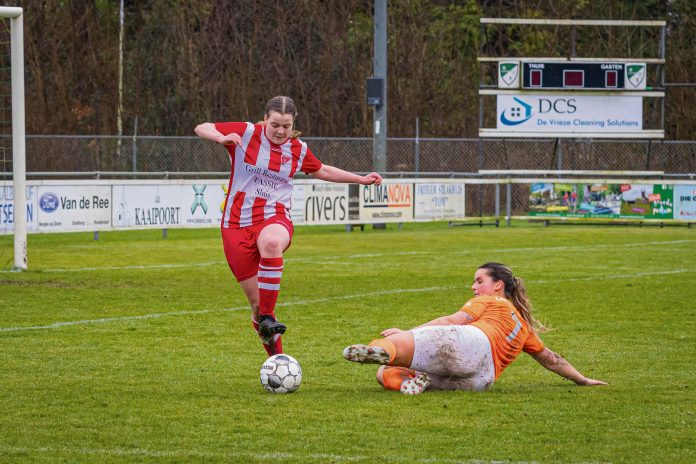 SLUIS/ AARDENBURG – Onlangs begon Lois Gelauf (20) aan haar derde seizoen bij het combinatieteam van SV Sluis en Aardenburg. Voor de verdedigster en haar teamgenotes is ‘lekker meedraaien’ dit seizoen sportief gezien het doel. ‘Maar het draait voornamelijk toch ook om plezier in het voetbal. Dat lukt met dit gezellige team gelukkig altijd prima.’