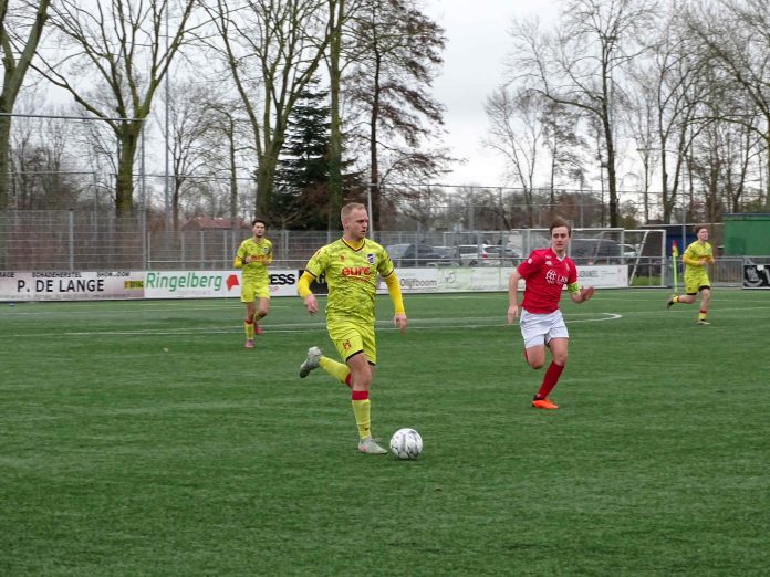 een aanvaller, die beheerst de bal achter doelman Dion Engelbracht kopte (1-0).