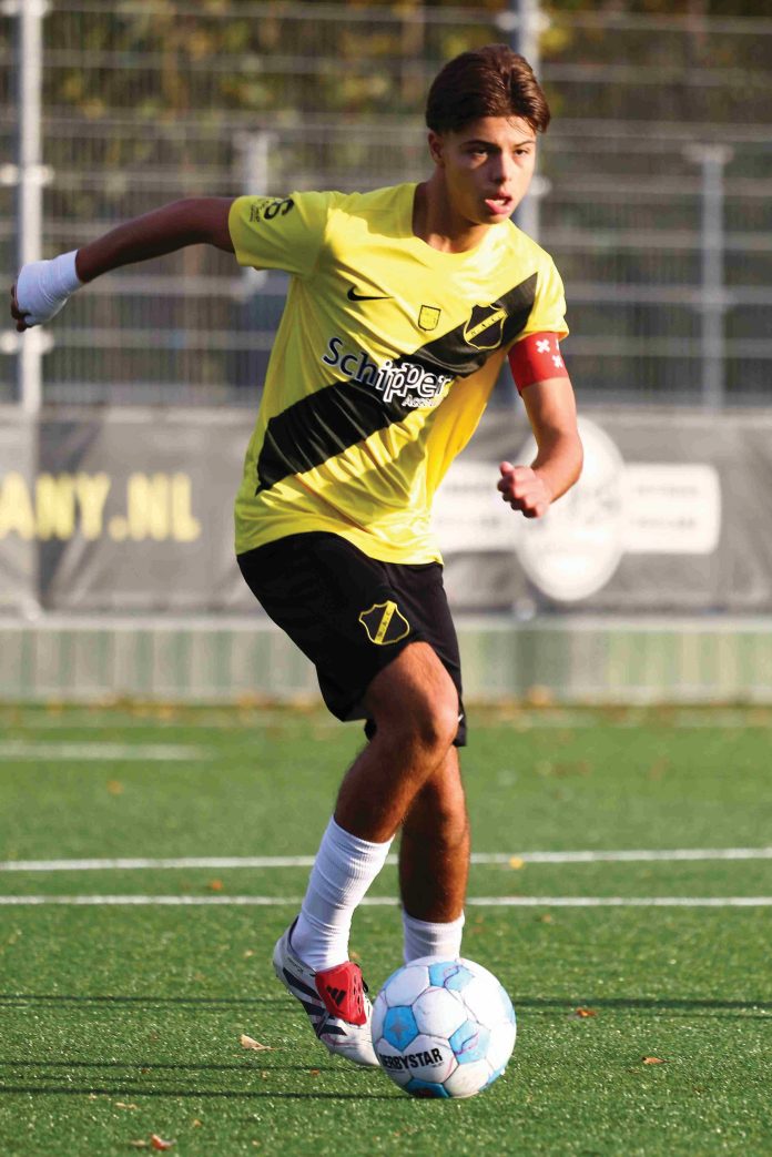 Vorig seizoen tekende hij, samen met Pepijn Reulen, Thomas Goos, Jemuel Erat en Christian Chiza, zijn eerste profcontract bij NAC. Een beloning die vertrouwen geeft, maar ook verwachtingen met zich meebrengt. “Het laat zien dat de club in mij gelooft en mij ziet als een potentiële speler van NAC 1. Maar ik moet het zelf waarmaken.” Als centrale verdediger ligt zijn kracht in leiderschap en de typische NOAD-instelling: nooit opgeven, altijd doorzetten. “Ik ben fel in duels en ga de strijd altijd aan.” En als hij zelfkritisch is: “Wil ik mijn mentaliteit verbeteren. Nog meer gefocust blijven op mijn eigen taken en minder bezig zijn met randzaken.” Die leergierige houding, bracht hem naar het internationale jeugdpodium. Van Aarst werd opgeroepen voor de jeugdselecties van Oranje én Marokko (Onder 17). Voor Oranje O17 maakte hij door een afgelaste wedstrijd nog geen minuten, maar bij Marokko O17 wel. “Dat voelde als een beloning voor het harde werken.” Bij Marokko speelde hij samen met talenten van Europese topclubs als Chelsea, Real Madrid en AS Monaco. “Dan merk je dat het niveau hoog ligt. Internationaal worden fouten direct afgestraft. In de competitie kom je er soms nog mee weg, maar daar niet. Voor mij een heel mooie leerschool.” Qua speelstijl ziet hij duidelijke verschillen. “Bij Oranje is het wat meer voetballend en zoekt men vaker oplossingen over de grond. Marokko schakelt sneller van speelstijl als dat nodig is.” Een definitieve keuze tussen beide landen, heeft hij nog niet gemaakt, en dat hoeft ook nog niet.